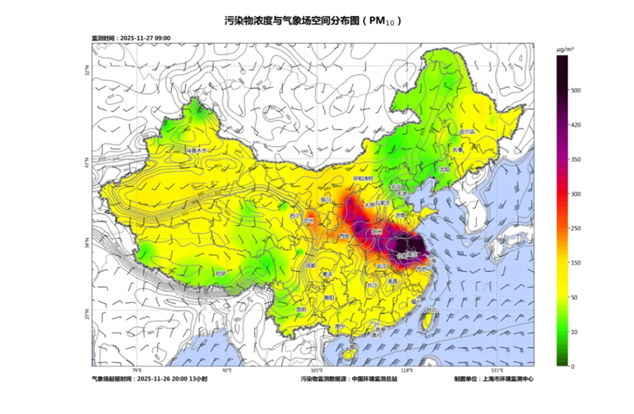 一波沙尘正在影响上海。今天(11月27日)11时,上海PM10的小时浓度高达278微克/立方米,实时空气质量指数164,为中度污染。